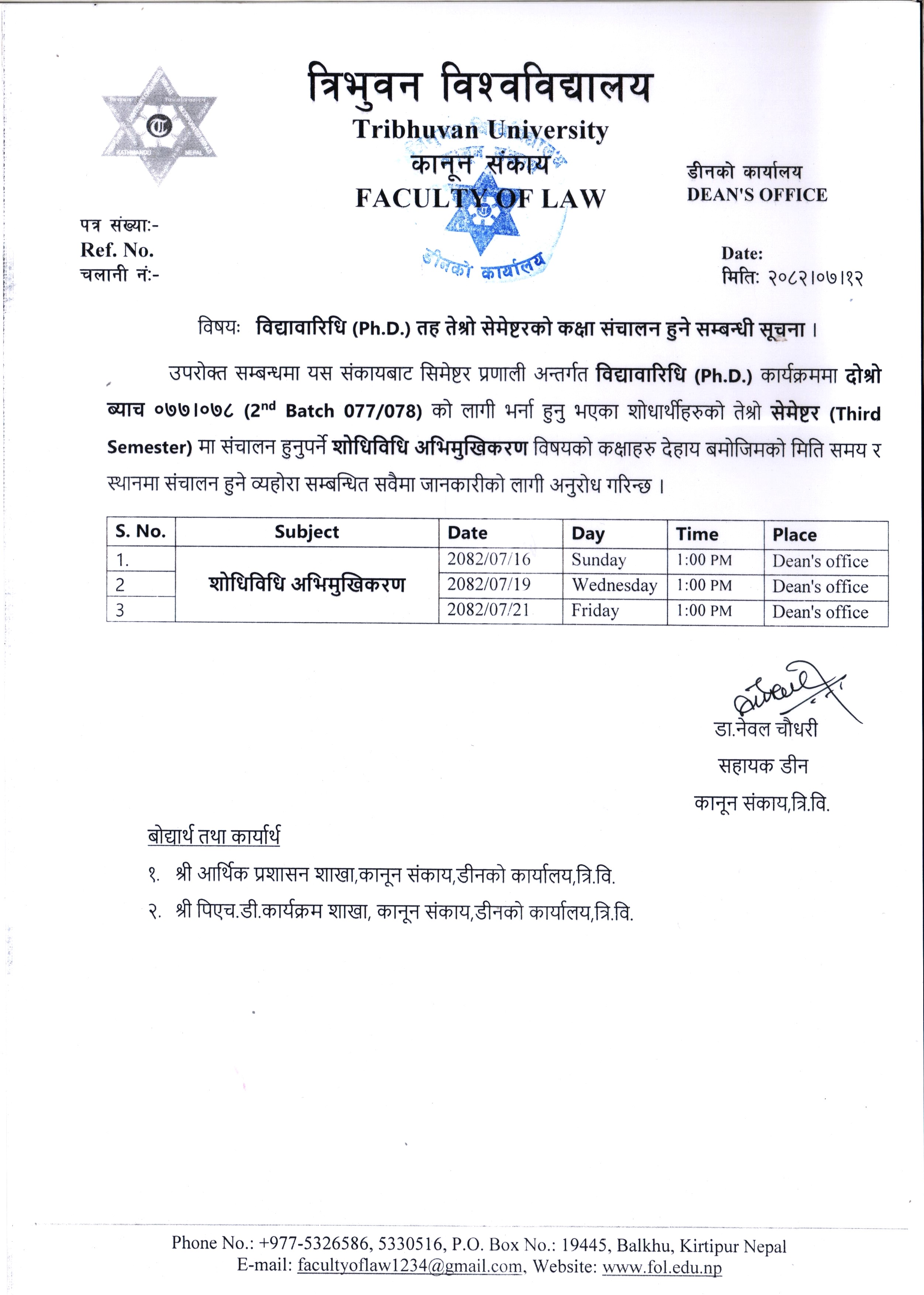 विद्यावारिधि तह 2nd Batch 077/078 का शोधार्थीहरुको कक्षा सञ्चालन सम्बन्धी सूचन
