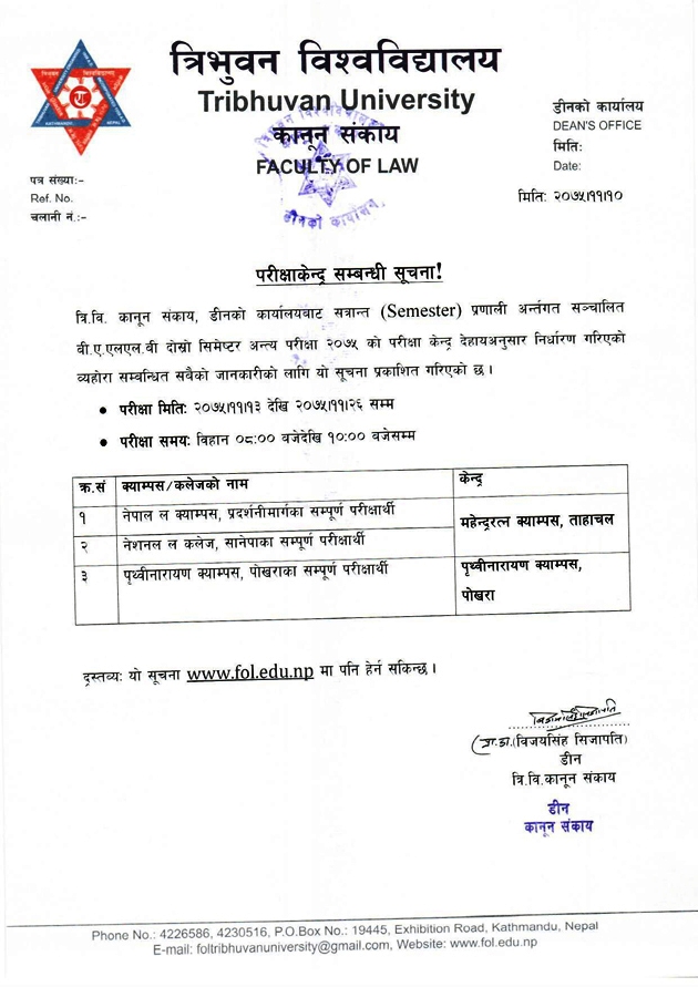 B.A.LL.B. 2nd Semester 2075 Examination Center